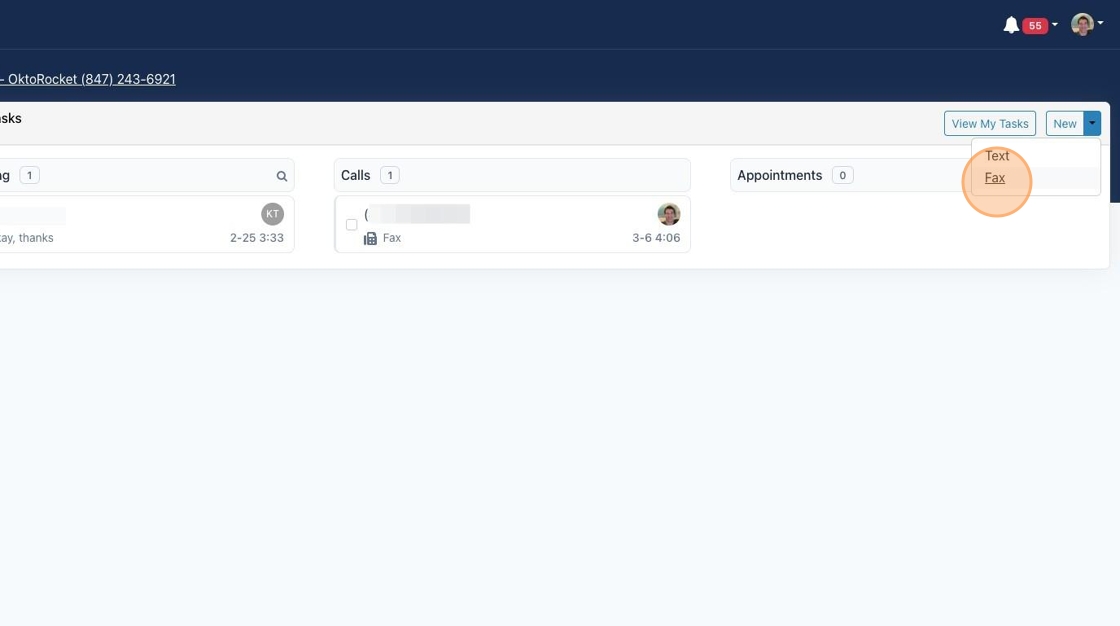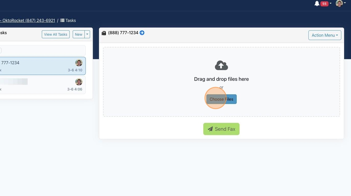 Before going through this guide. Validate that a phone number has been enabled for faxing in your OktoRocket site. You can do this by going to Sites -> Edit a Site -> Contact Details. A fax number should have a fax machine icon next to it.