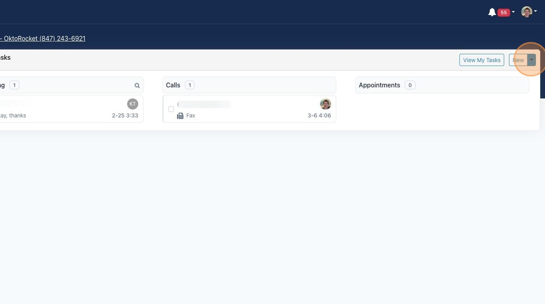 1. Navigate to the OktoRocket dashboard. Click the dropdown next to New