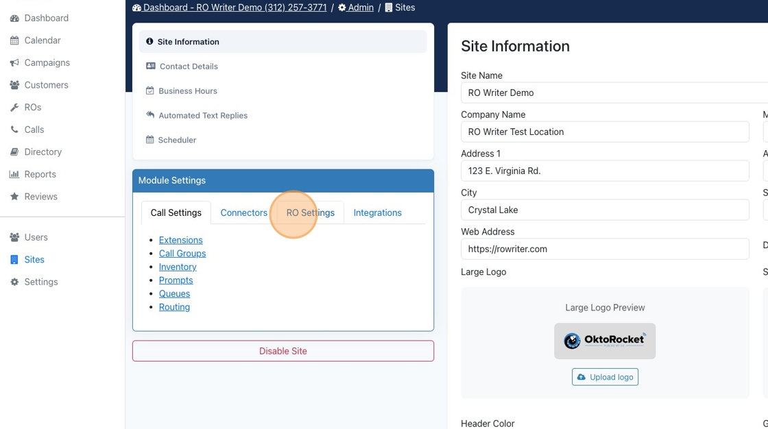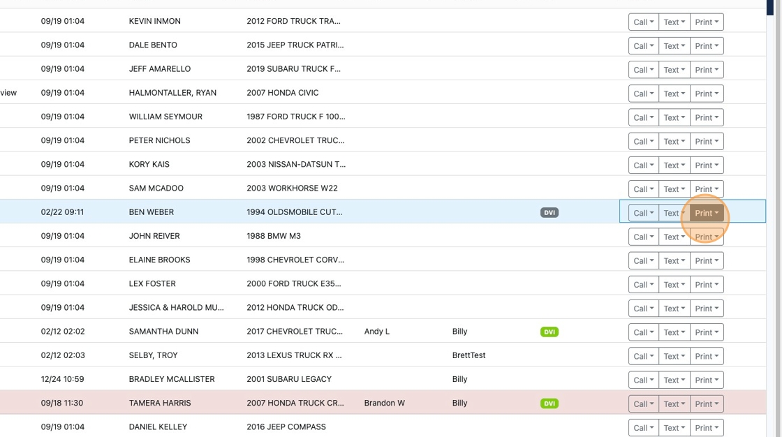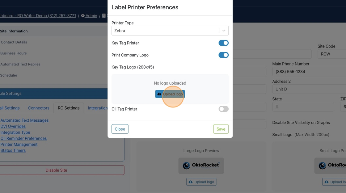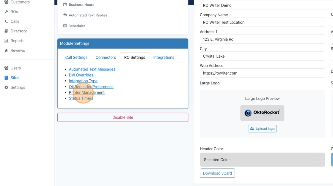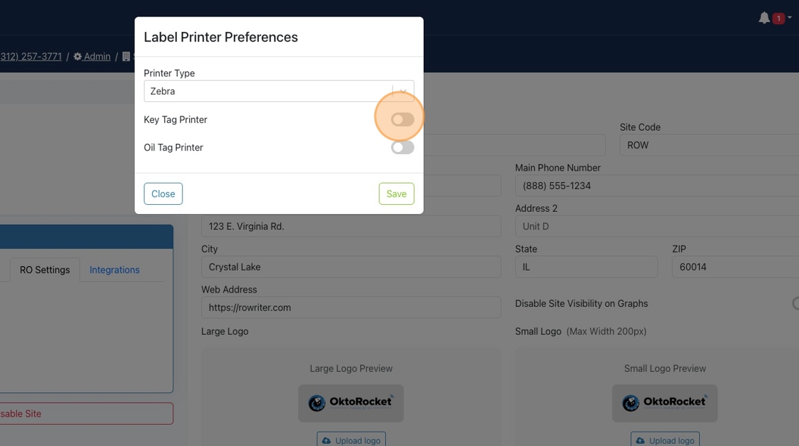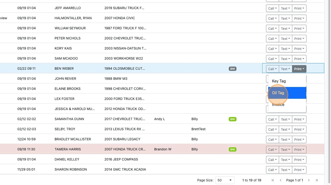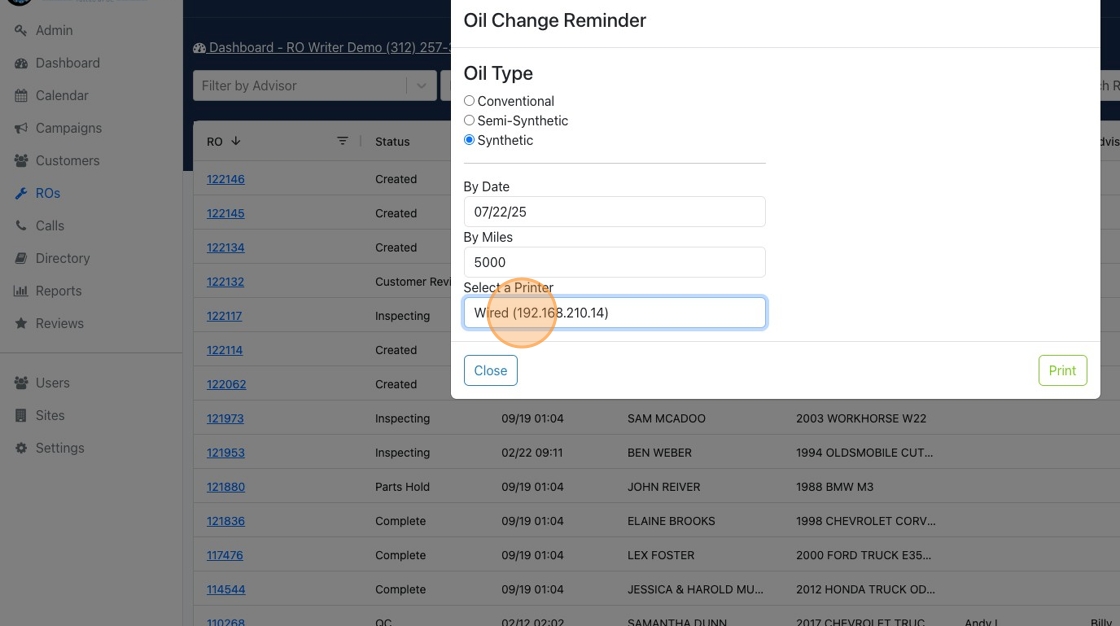 9. Once that has been done, you'll want to refresh your browser session so that those new settings are picked up. And then, if you go to RO's, you'll now have a print option. If we go to the key tag or oil tag,