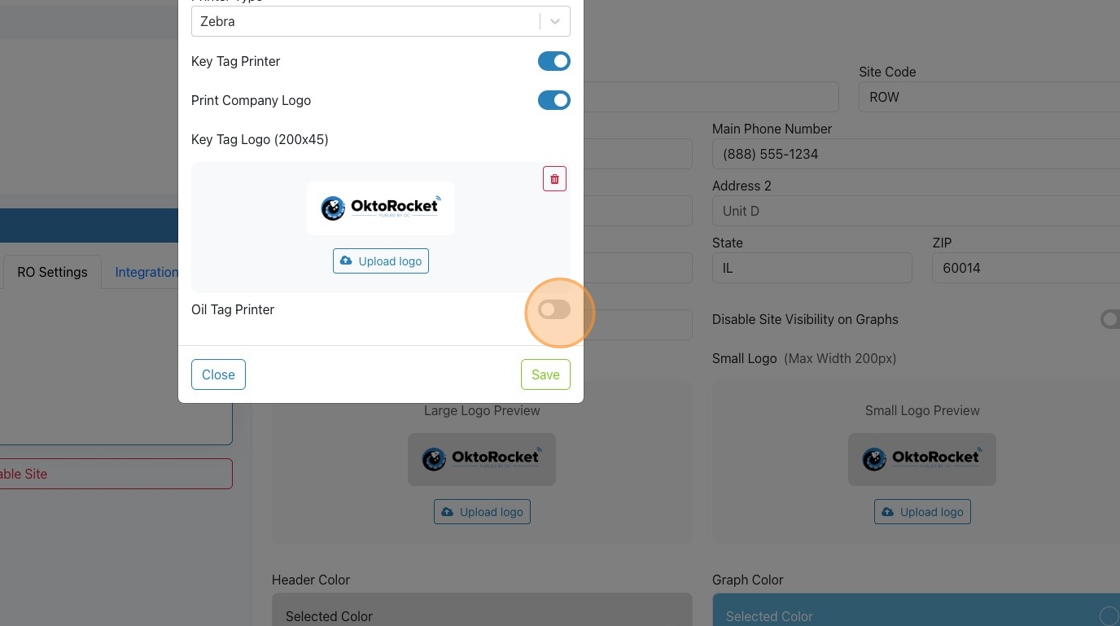 5. First, we'll do key tag. If you want your logo printed on the key tag, you'll want to toggle that on as well.
